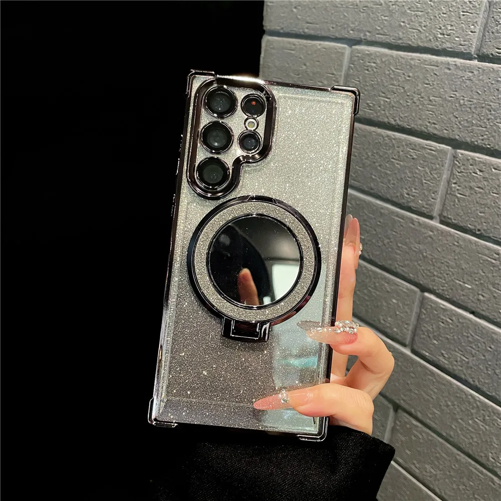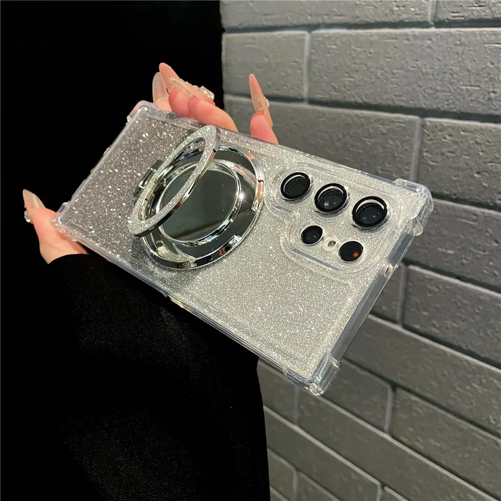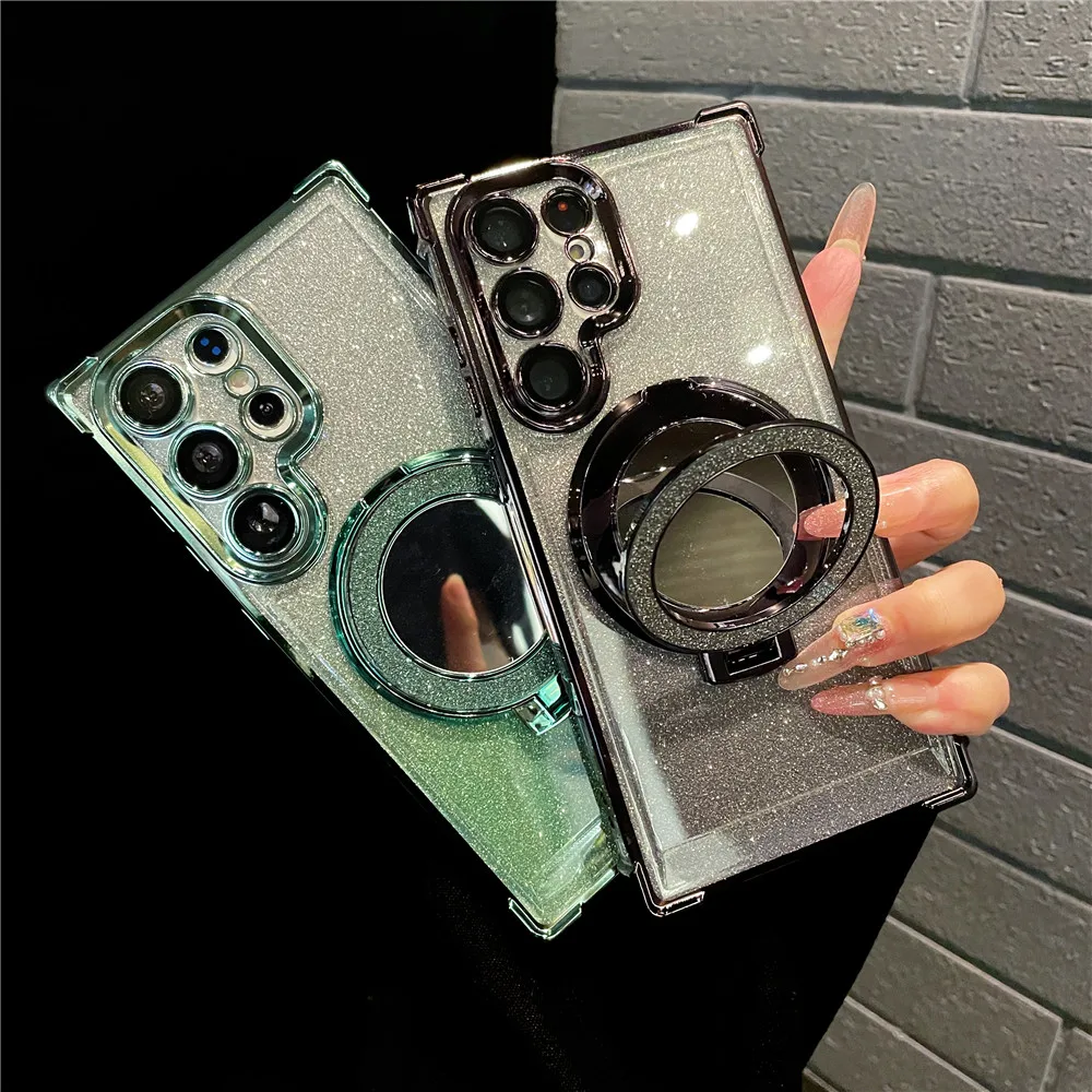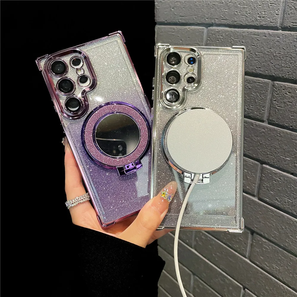 Ring Bracket Bling Glitter Mirror For Magsafe Case For Samsung S24 S23 S22 S21 S20 Note20 10 Plus Ultra FE Wireless Charge Cover