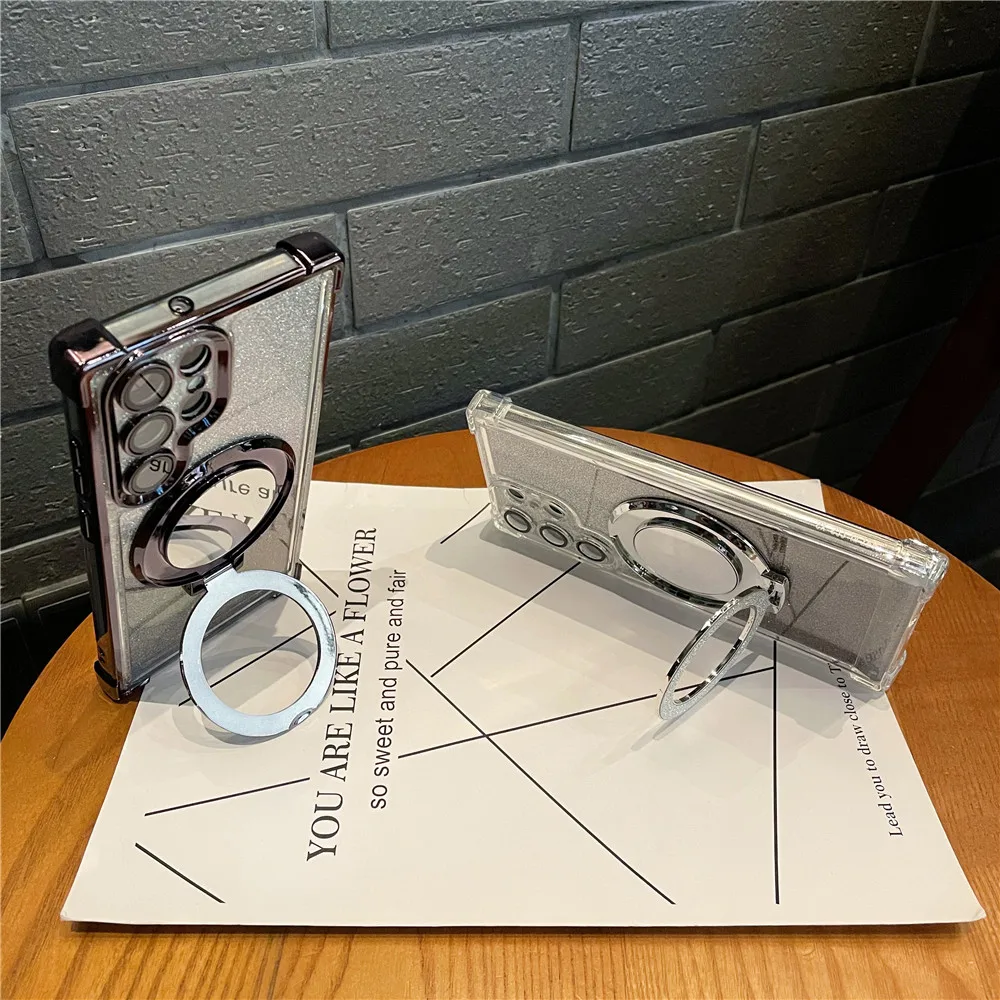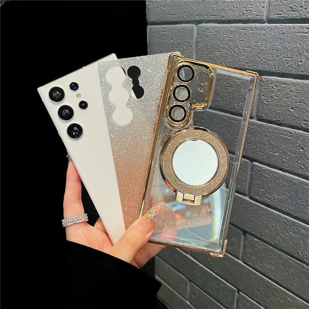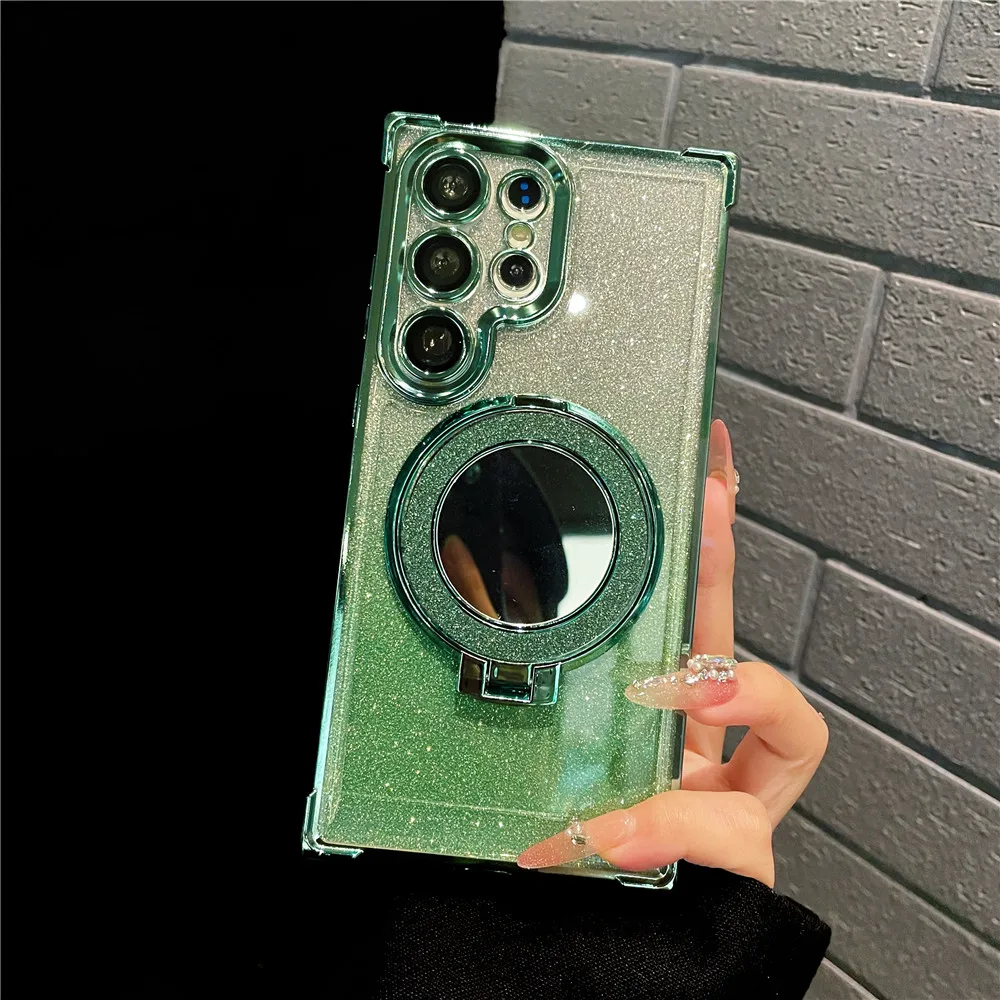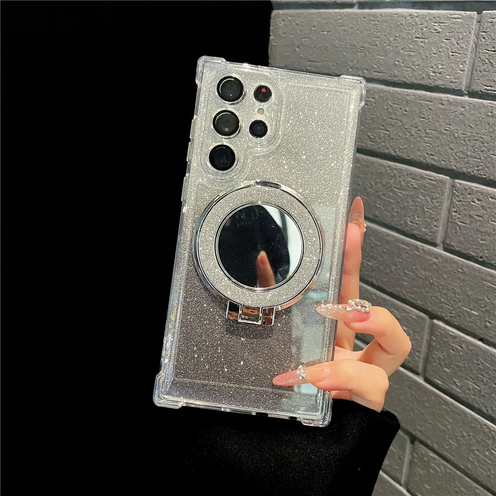 Ring Bracket Bling Glitter Mirror For Magsafe Case For Samsung S24 S23 S22 S21 S20 Note20 10 Plus Ultra FE Wireless Charge Cover